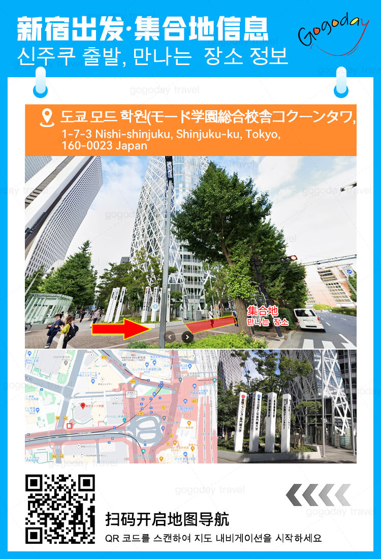 *만 0-2세 아동은 좌석을 점유하지 않고 무료이며, 사전에 알려 주시기 바랍니다. 만 3세 이상 아동은 성인으로 간주됩니다 (1)❤특별히 유의하세요. 여행 일정에 영향을 미치는 오류가 발생하지 않도록 정확한 이메일을 제공해 주시기 바랍니다. 출발 전날 19시부터 21시까지 여행 일정 확인서를 이메일을 통해 발송할 예정이며, 여기에는 집합 시간, 집합 장소, 가이드 연락처 및 차량 번호 등의 정보가 포함됩니다. 이메일을 확인해 주시기 바랍니다. (2) ★티켓 등 자비 항목은 현금으로 지불해야 합니다. 짐이나 유모차를 휴대할 경우, 설명하거나 미리 알려주십시오.우리는 한국어를 사용하는 관광객들을 같은 버스에 배치하려고 노력할 것입니다. 그러나 다른 나라나 지역의 관광객들이 같은 버스에 배치될 수도 있으니 양해 부탁드립니다. (3) 본 일정은 여러 여행자와 함께 하는 조인투어 일정으로, 본 일정에 참여하시는 고객께서는 각 관광지의 체류시간을 준수하시고 운전기사의 안내에 따라주시기 바랍니다. (4) 여행 중 여권 및 귀중품은 반드시 휴대하시고 안전하게 보관하시기 바라며, 분실, 도난, 훼손 등이 발생할 경우 도움을 드릴 수 없습니다. (5) 여행 도중에 혼자 그룹을 떠나는 경우 투어는 노쇼 처리됩니다. 그리고 이로 인해 개인 또는 재산의 안전이 침해되는 경우, 도움을 드릴 수 없습니다. (6) 노인, 고혈압, 심장병 등 심혈관 질환 환자, 임산부는 친척과 동반하는 것이 좋습니다. 69세 이상의 노인이나 임산부가 참가신청을 할 경우 알려주시기 바랍니다. (7) 각 여행의 도착 시간은 당일 교통 상황, 날씨, 축제, 군중에 따라 변경될 수 있으며, 앞서 언급한 기타 불가항력 요인으로 인해 여행이 지연되거나 취소될 경우 양해해 주시기 바랍니다. (8) 법률 위반 및 귀하의 권익에 영향을 미치지 않도록 일본 현지 법률 및 규정을 준수하고 일본 법률에서 금지하는 품목을 휴대하지 마십시오. (9) 참고 차종: 5-8인승차: 토요타 Alphard ; 9-14인승차: 도요타 HAICE 또는 동급 차종;18~22인승차: 소형버스;22인승 이상: 대형버스, 이상 차량은 참고용이며 실제 차량은 당일 인원수에 따라 조정될 예정입니다. * 개별 여행자 보험 가입을 권장 드립니다. * 최소 모객 인원 미만 모객시, 투어가 취소될 수 있습니다.